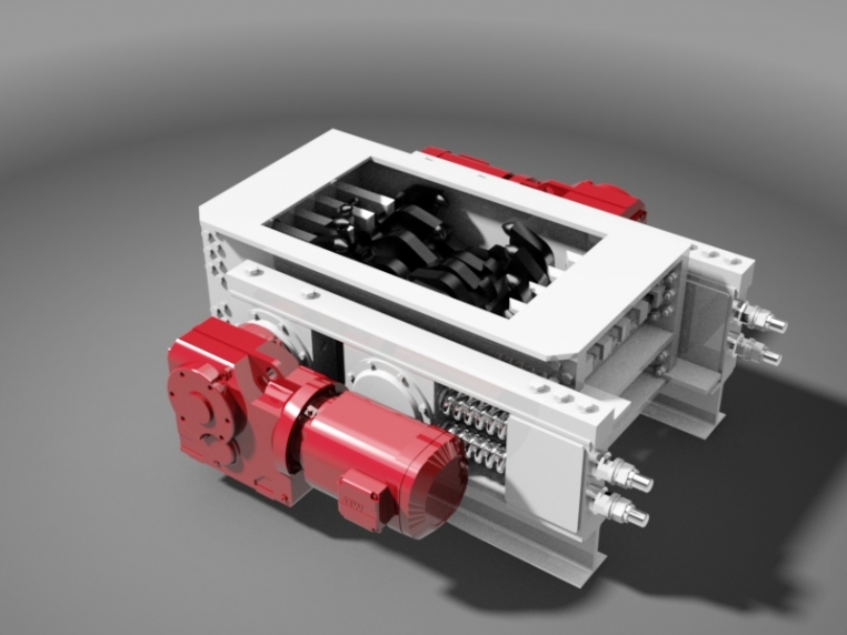 Dzięki zastosowaniu walców o odpowiednim kształcie zębów oraz nie dużej ich prędkości obrotowej istnieje możliwość kruszenia dużych gabarytów przy niewielkim rozmiarze kruszarki. Zastosowano łamacz dolny w celu poprawy jakości produktu oraz ochrony taśmy przenośnika przed bezpośrednim uderzeniem produktu.
